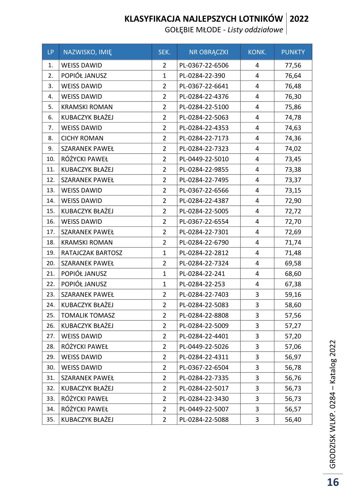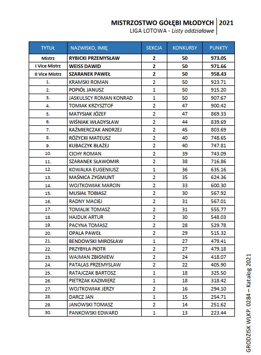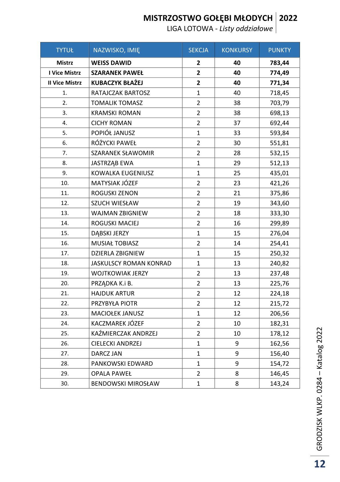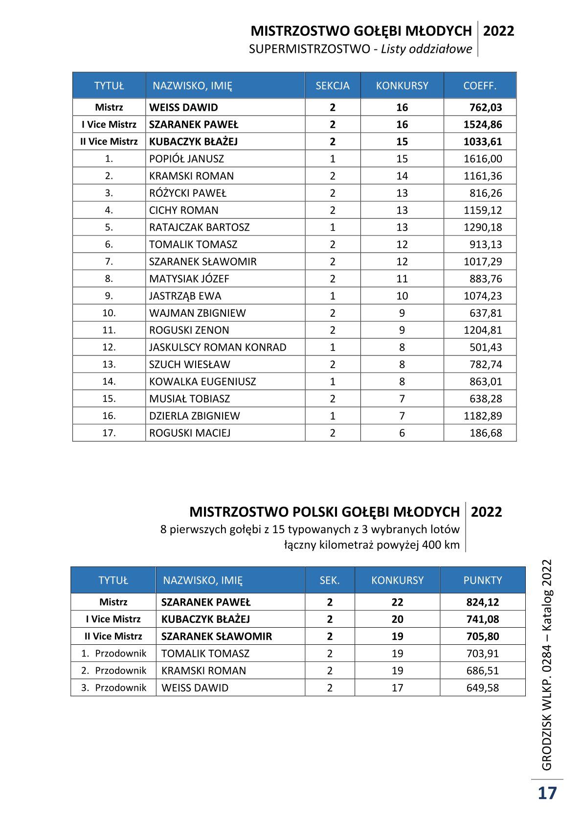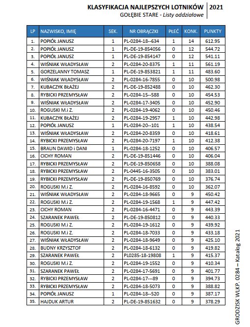 MISTRZOSTWO GOŁĘBI ROCZNYCH – 2 PRZODOWNIK 25 KONK. 997,22 PKT.