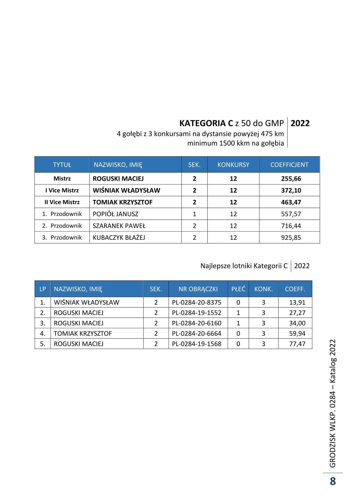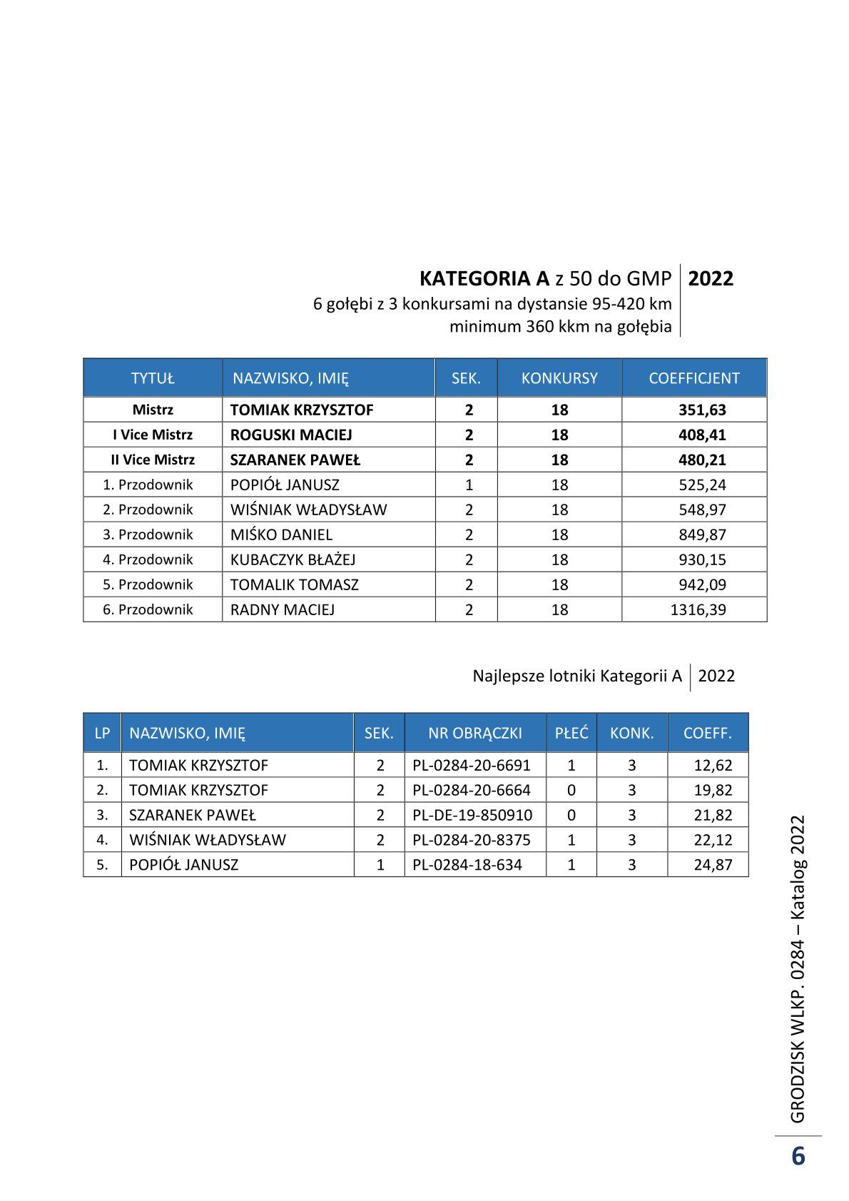 WICEMISTRZ KAT. OPEN / CEOF. 83,11 ( 3 NAJSZYBSZE GOŁĘBIE Z 5-CIU PIERWSZYCH LOTÓW )