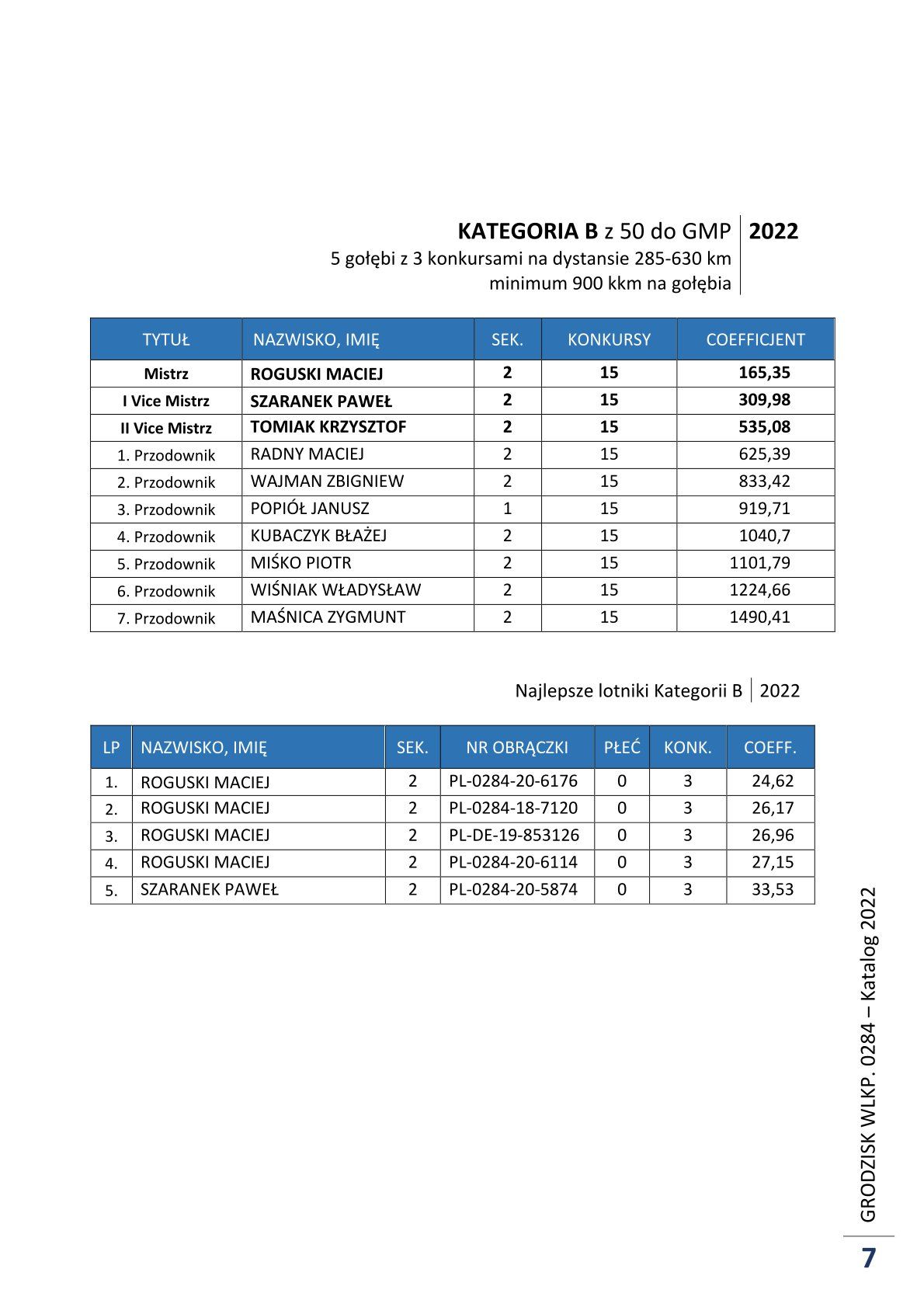 Loty gołębi dorosłych: KATEGORIA „B” (categorie B)