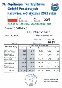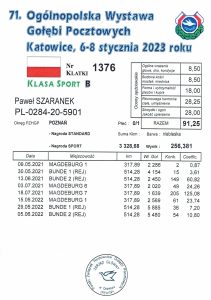 7 GOŁĘBI W REPREZENTACJI OKRĘGU POZNAŃ- KATOWICE 2023